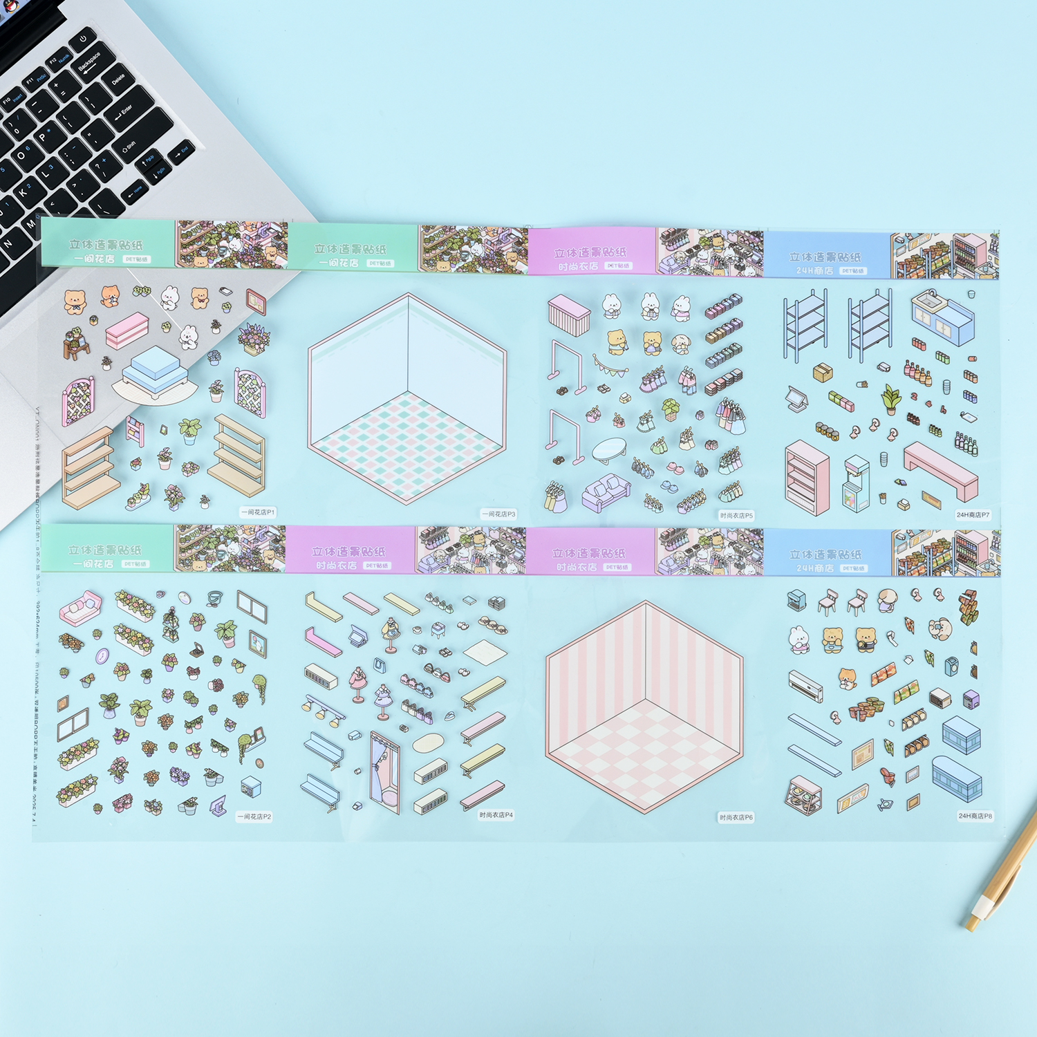 50 Vellen Per Pak Aquascape Sticker Boek Collectie 3d Kubieke Cabine Kinderen Decompressie Miniatuur Scene Stickers