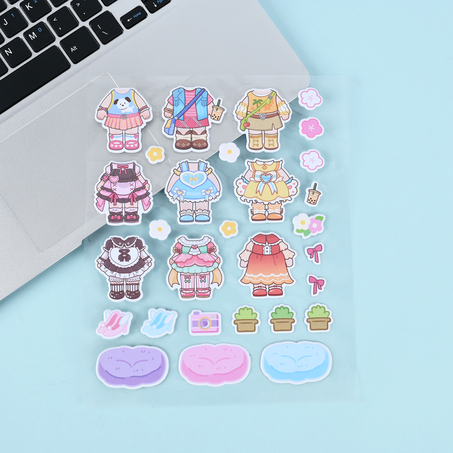 Hoge Kwaliteit Decoratieve Stickers Schattige Cartoon Mooie Meisje Stickers Custom Verpakking Clear Aangepaste Bubble Stickers Voor Kinderen